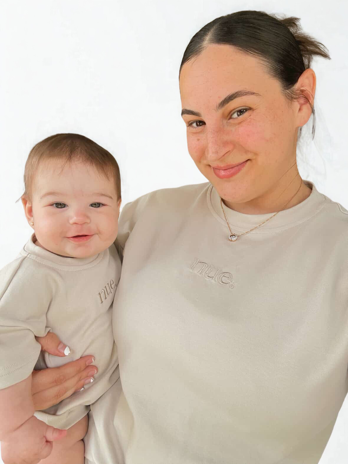 I'm Katie, mum to Amelia, and the heart behind nue. collective. What started as a search for simple, stylish essentials for my own family has grown into a collection made for everyone - babies, kids, parents and individuals who love comfort and connection. Seeing your familes, couples and the little ones wearing nue means everything to me, and I'm so excited to continue bringing you essentials that become part of your everyday memories.